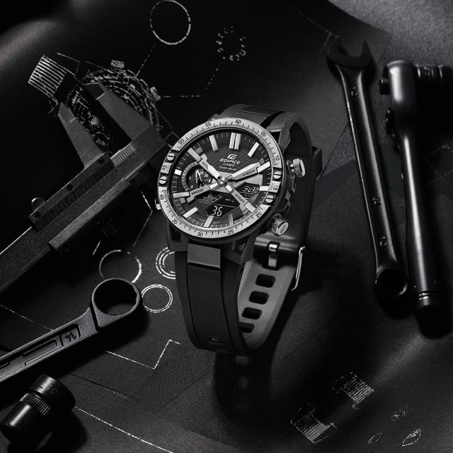 ダブルウィッシュボーン式サスペンションに着想を得てデザインされたEDIFICE SOSPENSIONE ECB-2000がベースモデル。