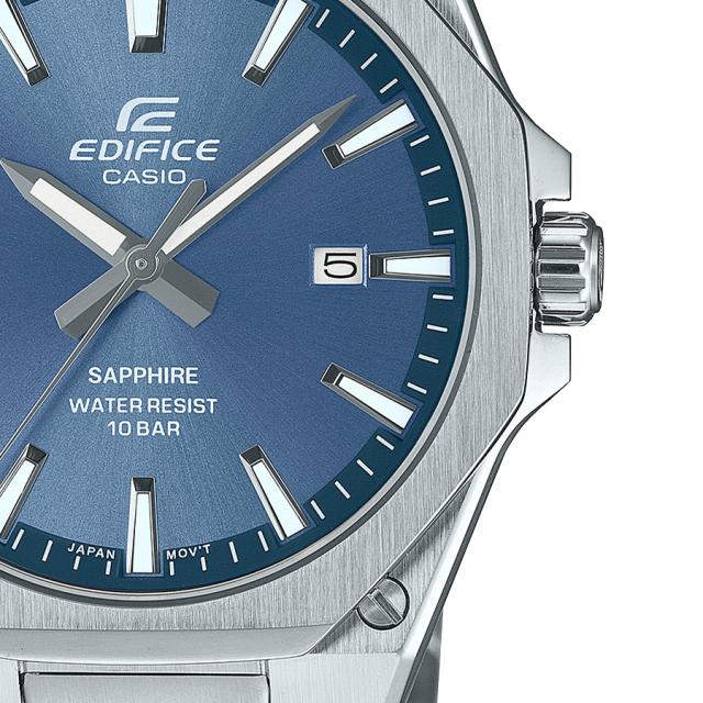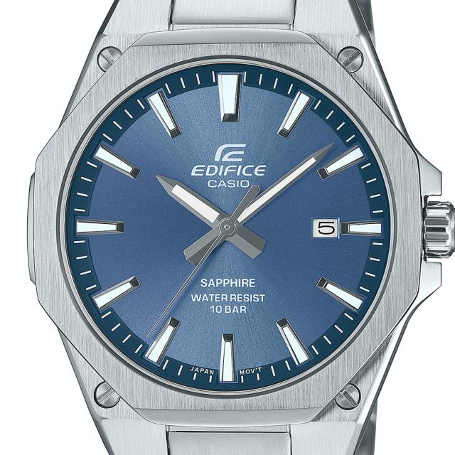 EFR-S108シリーズは7.8mmという薄型ケースを採用した3針アナログモデルで、装着感の良さが大きな特長です。八角形のフラットベゼルがスポーティさとラグジュアリー感を両立したデザインを演出しています。