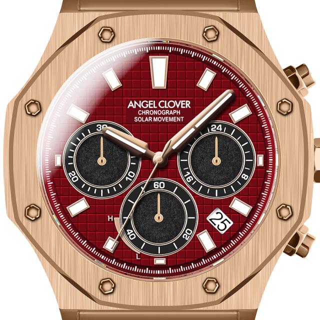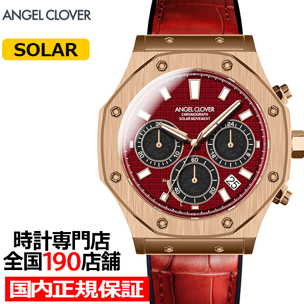 エンジェルクローバー Exventure Solar エクスベンチャーソーラー EVS43PG-RE メンズ 腕時計 ソーラー クロノグラフ 革ベルト レッド