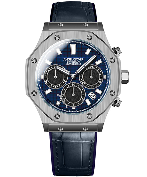 フル充電時約4ヵ月駆動のソーラークオーツムーブメントを採用し、サブダイヤルから光を集めます。パワーリザーブインジケーターも搭載しており、プッシャーを長押しするだけでソーラー蓄電残量を確認することが可能です。