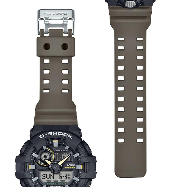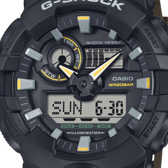 1983年の発売以来、飽くなき強さを求めて進化を続けるタフネスウオッチG-SHOCKから、ブラックのケースにカーキやオリーブグリーンといった人気のカラーを採用した、Two tone utility colorsです。