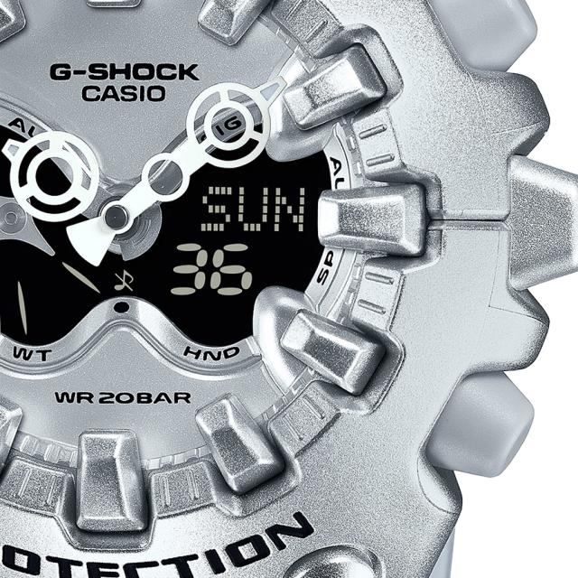 G-SHOCK独自の耐衝撃性能をキープしながら、ユニークかつ力強い外装デザインを実現しています。