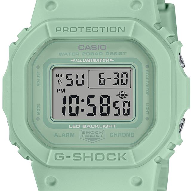 G-SHOCKのアイコンモデルであるDW-5600を小型化・薄型化したモデルです。ワントーンのカラーで全体を仕上げ、ファッショントレンドを押さえたカジュアルでスタイリングしやすいモデルです。