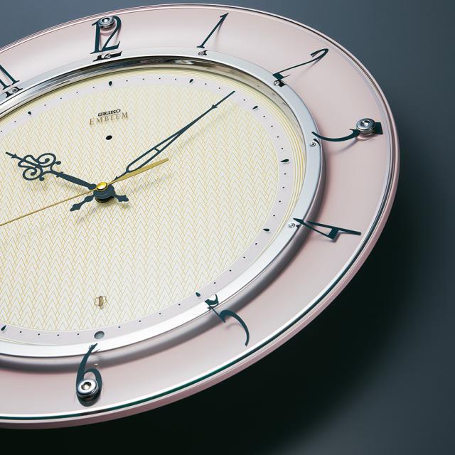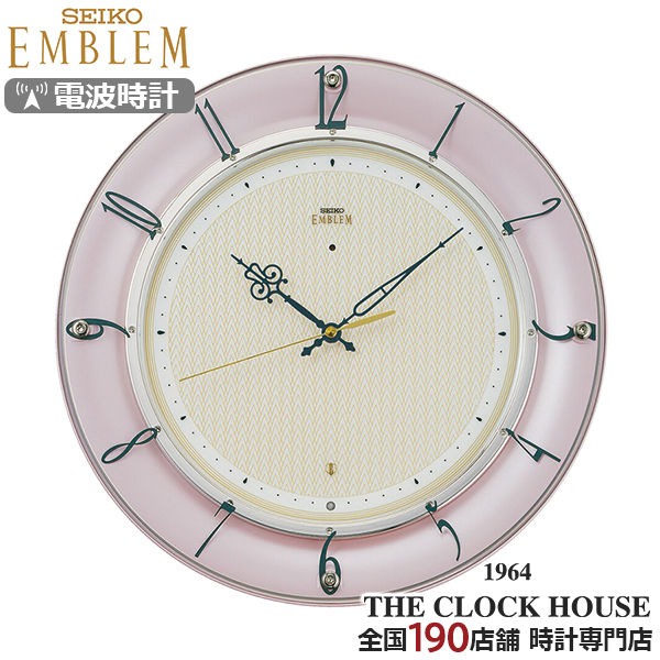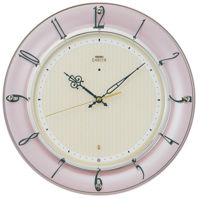 セイコー エムブレム 電波 掛け時計 HS561P クオーツ 電池式 クロック アラビアインデックス ピンク