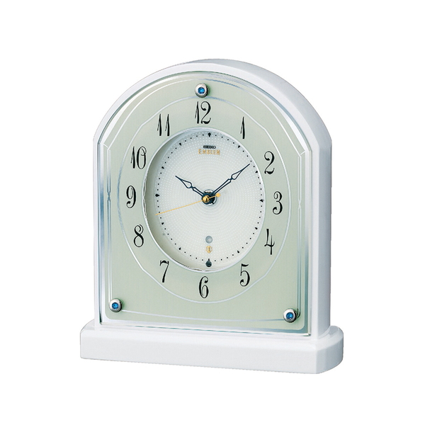 セイコー エムブレム 電波 置き時計 HW587W クオーツ 電池式 クロック アラビアインデックス