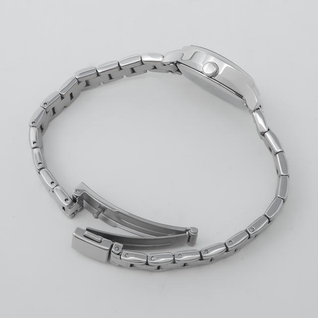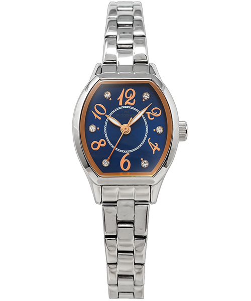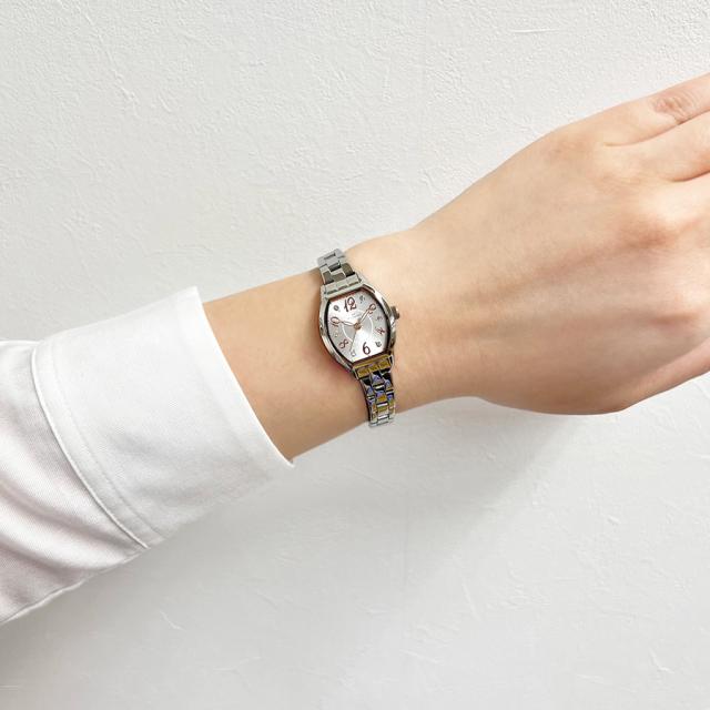 ケースには、手元にやさしく馴染むトノー(樽)型フォルムを採用。程よい存在感を持ちつつ、優美なラインが柔らかな印象を引き立てます。また、視認性に優れた文字盤デザインも、日常使いにうれしいポイントです。