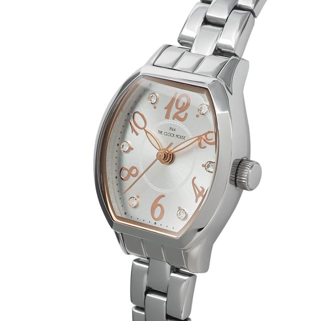 ザ・クロックハウスのレディースクオーツモデルから、トノー型ケースにアラビア数字を組み合わせた、上品な一本が登場です。