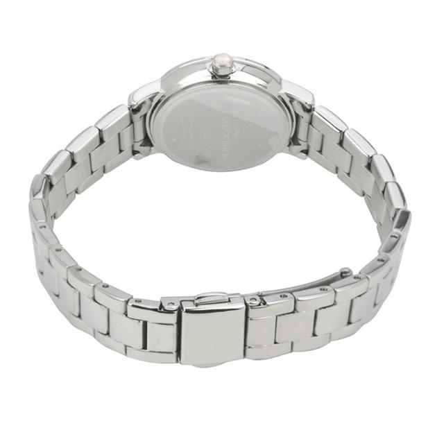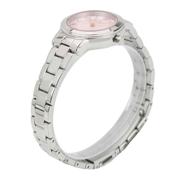 優しい色合いの女性らしい文字盤カラーと上品で繊細な印象の細め幅ステンレススチールのバンド、同素材のケースで、鮮やかに腕周りを演出します。