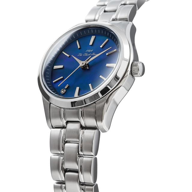 24mmのコンパクトなラウンドケースは、腕元に自然に馴染む上品なサイズ感。文字盤にはマザー・オブ・パールを採用し、光の角度によって繊細に表情を変える輝きが魅力です。