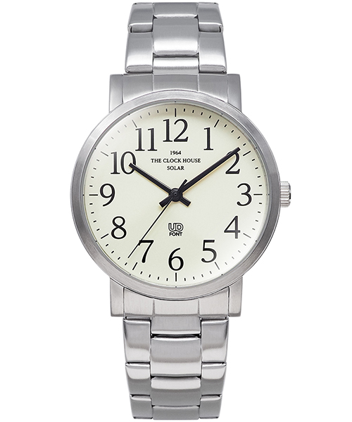 ユニバーサルデザインフォント(A-OTF UD黎ミン)を使用し、見やすい文字盤になりました。読みやすい数字でしっかりと時刻を確認できます。ユニバーサルデザインフォント(A-OTF UD黎ミン)に合わせるように作られたシンプルな針と、1分刻みのメモリで読み間違えることもありません。
