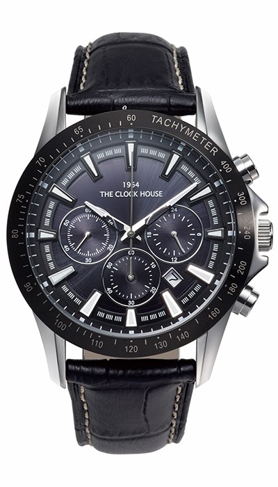 ザ・クロックハウス MBC1003-BK3B ビジネスカジュアル メンズ 腕時計 ソーラー 黒革ベルト クロノグラフ ブラック 雑誌掲載