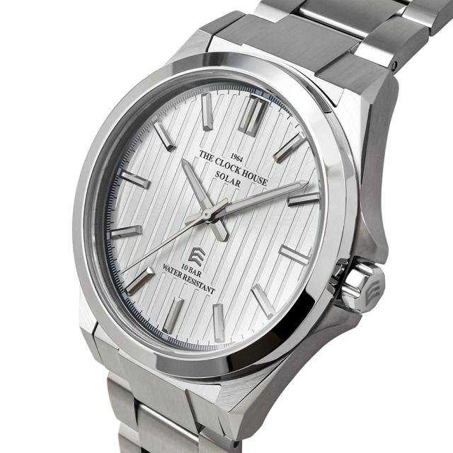ザ・クロックハウス エッジ ソーラー 3針 ストライプ MBC1009-SI1A メンズ 腕時計 ビジネス カジュアル シルバーダイヤル