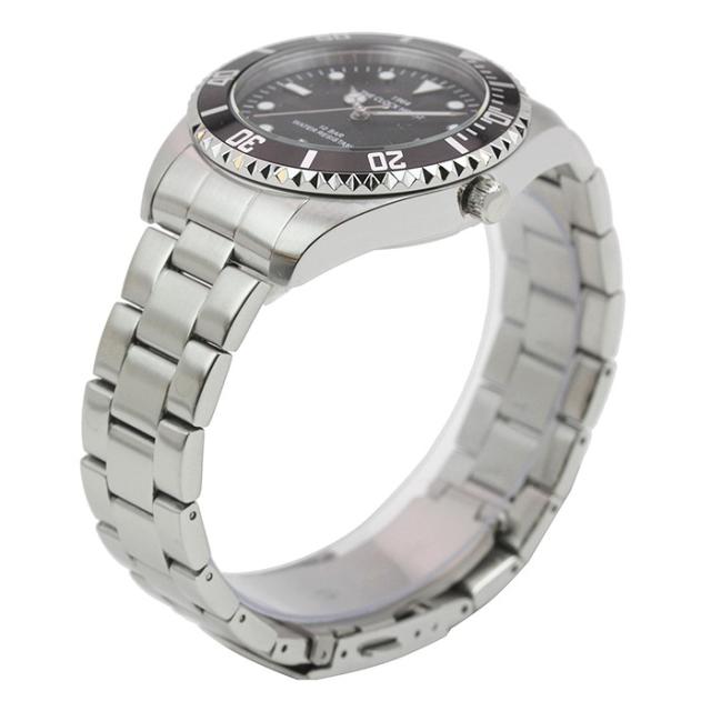 カジュアルなダイバーズデザイン。男らしさを感じるブラックの文字盤とベゼル。カジュアルなコーディネートと相性抜群。