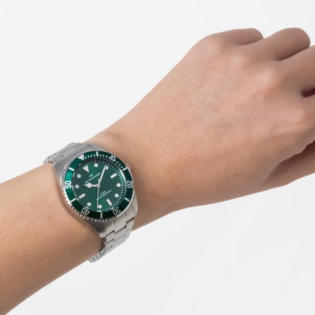 ザ・クロックハウス メンズビジネスカジュアルシリーズより、さわやかさを感じるグリーン文字盤のカジュアルなダイバーズデザインモデルが登場です。