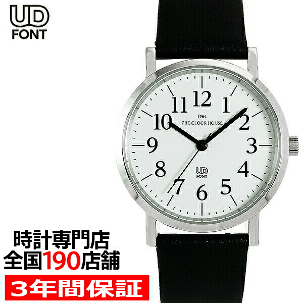 ザ・クロックハウス MUD5001-WH1B ユニバーサルデザイン メンズ 腕時計 クオーツ 黒レザー ホワイト ユーディー ユニセックス