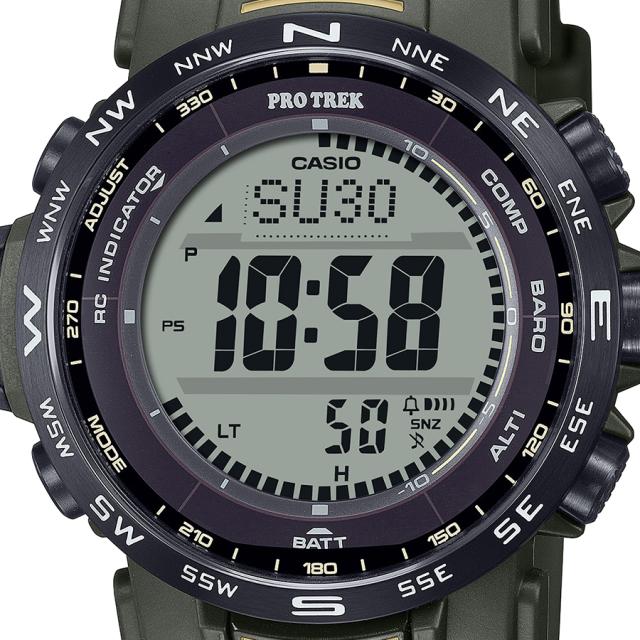 機能面では、トリプルセンサーにより方位・気圧/温度・高度の計測が可能です。さらに、電波時計やタフソーラーなどの実用的な機能も備えており、様々なシーンで高い機能性と実用性を提供します。