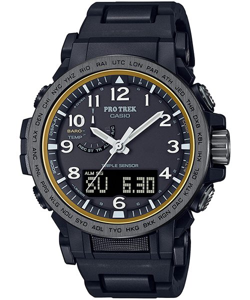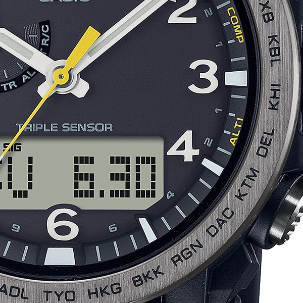 PRW-51Yは、視認性の高い蓄光入りの立体的なアラビック時字が特徴的なモデルです。また、環境に配慮したバイオマスプラスチック素材のソフトウレタンバンドとなっています。ケースと樹脂製の裏蓋にもバイマスプラスチックの素材を使用しています。時計本来の機能として世界6局の電波を受信するマルチバンド6やタフソーラーなど実用的な機能も兼ね備えます。様々なシーンで対応する高い機能性と実用性を詰め込んだモデルです。