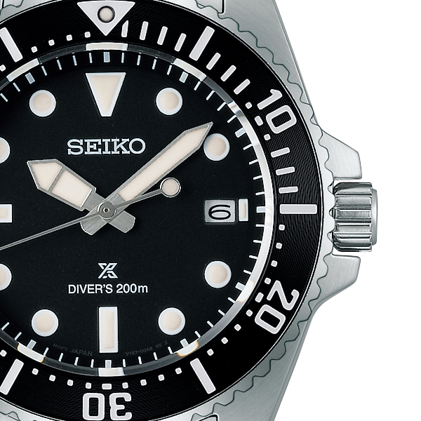 ケースサイズは、腕時計をはじめて買う方にも人気の高い41.0mmへサイズを調整しました。また、ダイヤルはダイバーズらしい高い視認性と力強いデザインはキープしつつ、日常生活でも取り入れやすいシンプルな形状の時分針を採用しています。駆動方式はソーラーであり、タフな使用にも適したサファイアガラスを採用しているなど随所に安心設計が施されています。