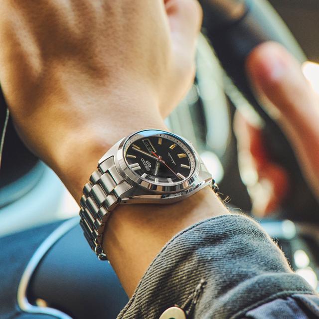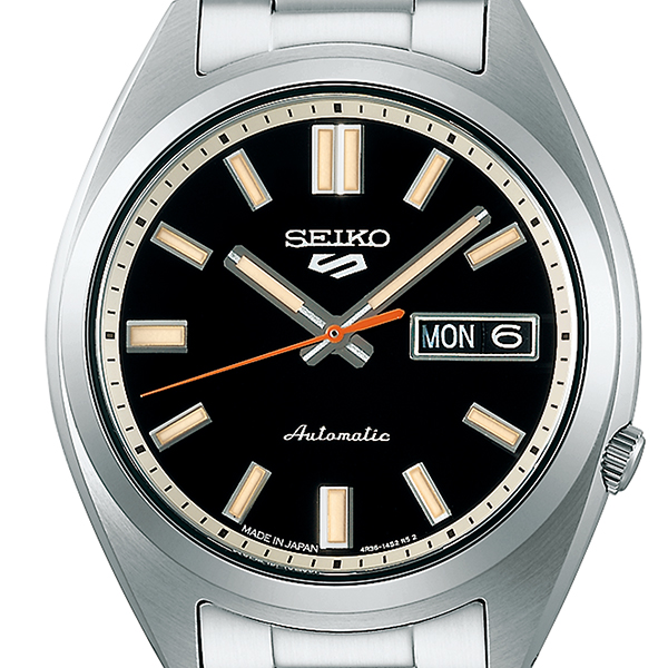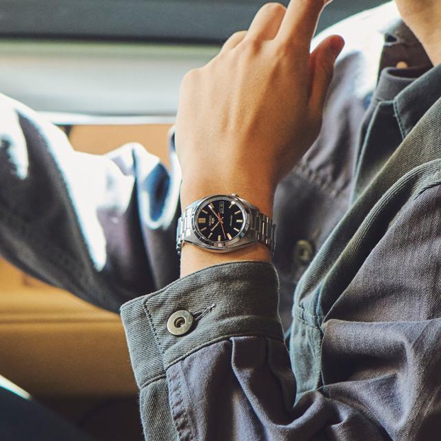 スポーティで艶のあるブラックのダイヤルに、1970年代の5スポーツで多く採用されていたオレンジ色に施された、時分針とのコントラストがはっきりした秒針が特徴です。