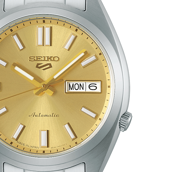 セイコー 5スポーツ SNXSシリーズから、存在感のあるゴールドダイヤルモデルが登場です。