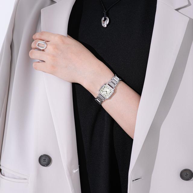 ナノユニバースコラボレーション初の採用となるメタルブレスレットは、存在感のあるつややかな3列タイプを採用しました。質感の良い無垢のブレスレットで、ジュエリーとのコーディネートを楽しめます。