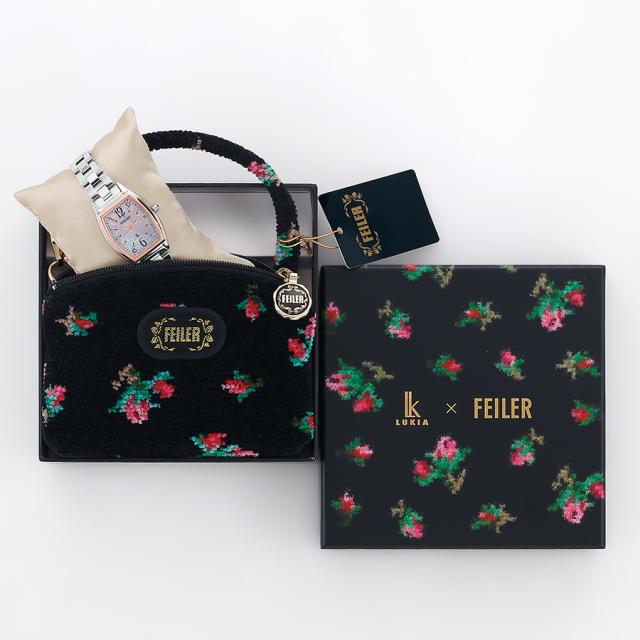 FEILERの中でも人気のある花をモチーフにした”ミュルミュール”と”リアローズプティ”の柄を時計デザイン・時計が梱包されるポーチ・外箱に施しました。それぞれのモデルには、花型の金属パーツとラボグロウン・ダイヤモンドをあしらい、ダイヤルレイアウトを更に魅力的な装いにしています。