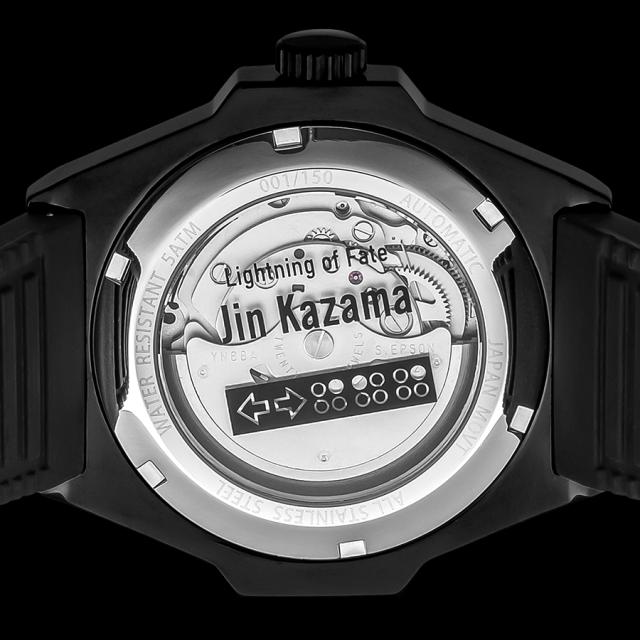 シースルーのケースバックには、仁の名前と「Lightning of Fate -運命の稲妻-」のキャッチコピーを刻印し、さらに「羅刹門・壱(らせつもん・いち)」のコマンドや数量限定を示すシリアルナンバーも刻印されています。