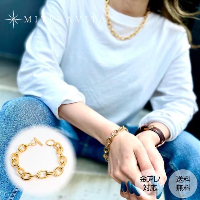 サージカルステンレス ブレスレット チャンキーチェーンブレスレット ペーパークリップ【B18】 つけっぱなし 肌に優しい 医療用ステンレス レディース アクセサリー 18K 金属アレルギー 金アレ SUS316L ニッケルフリー ゴールドアクセサリー miteravita ミテラヴィータ