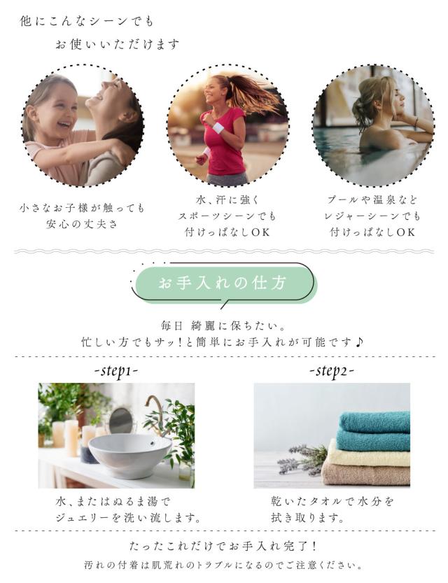 金属アレルギーの方にも安心&安全の、肌に優しい素材です。