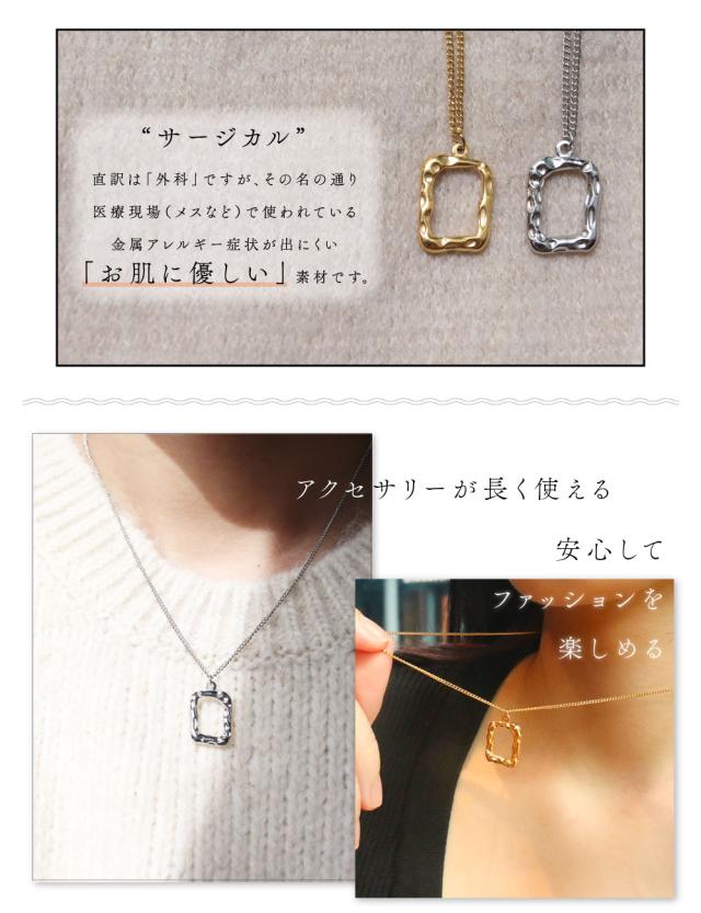 金属アレルギー対応 ネックレス サージカルステンレス ネックレス 打刻スクエアペンダント ネックレス 【N38】つけっぱなしok サビない 変色しない ネックレス 肌に優しい ニッケルフリー レディース アクセサリー 18K SUS316L miteravita ミテラヴィータ
