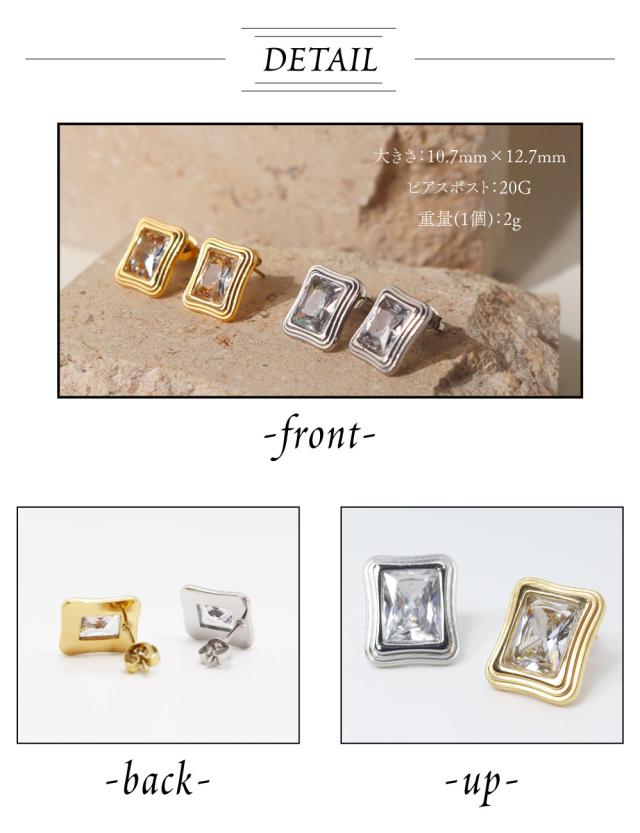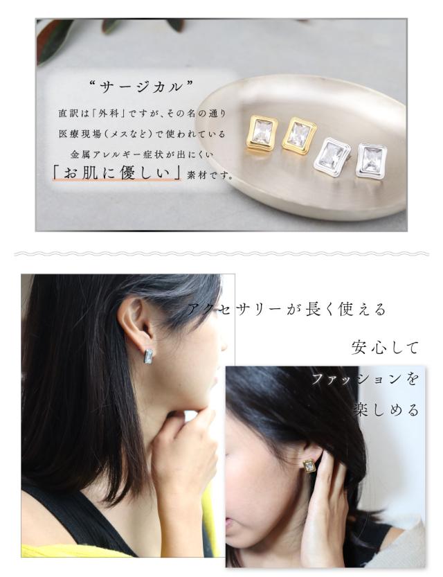 金属アレルギー対応 ピアス サージカルステンレス ピアス アンティークスクエア ジルコニア レディース 18K 金アレ対応 サージカル ステンレス SUS316L ゴールド シルバー miteravita ミテラヴィータ【P44】