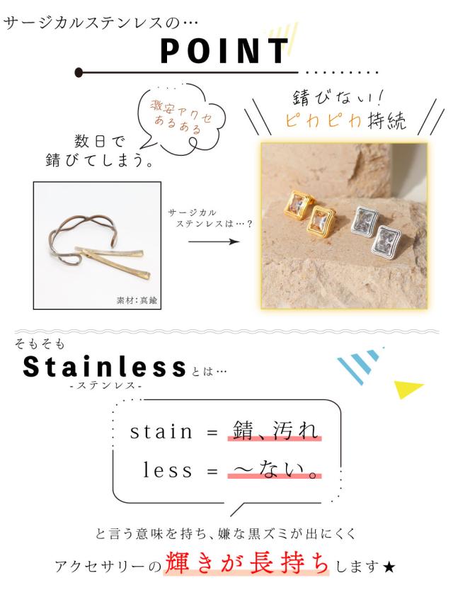 【キーワード】ステンレスジュエリー サージカルステンレス インスタ 金アレ対応 アクセ ピアス プレゼント ギフト 18金 14金 18K 14K 10金 10K ゴールドアクセサリー シルバーアクセサリー 30代 40代 アクセサリー ジュエリー 付けっぱなし 錆びない 送料無料 肌に優しい 肌荒れしにくい