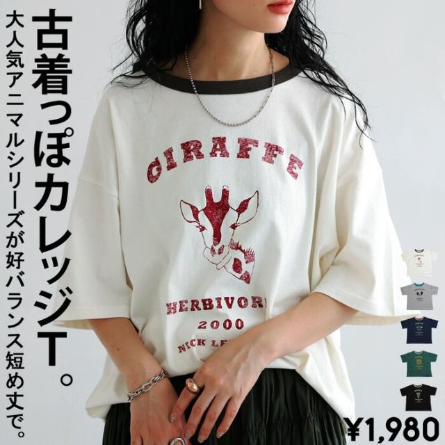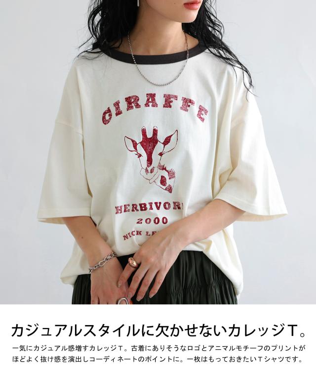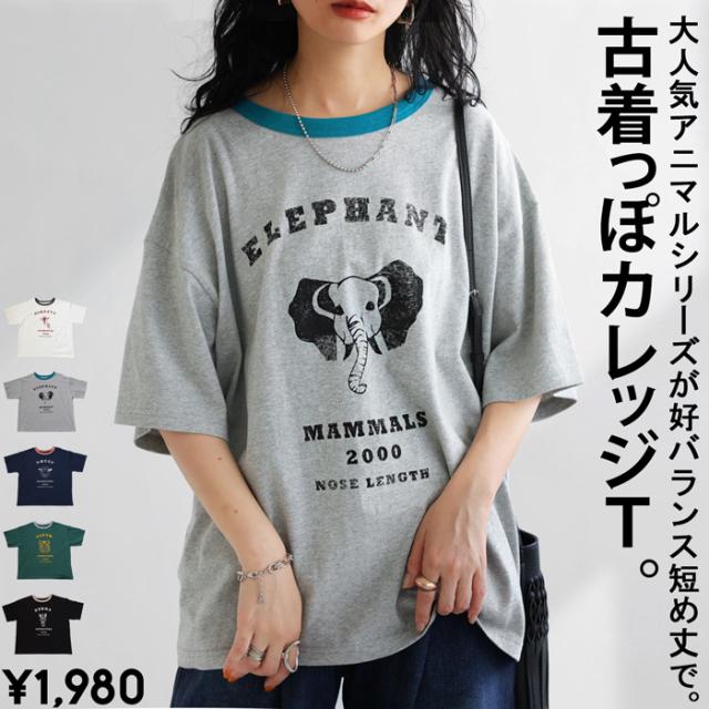 【検索ワード】アニマル カレッジロゴ Tシャツ レディース トップス 綿100 カットソー 半袖 五分袖 アニマルプリント 配色 クルーネック 丸首 ロゴT 手描き 象 キリン トラ ヒツジ シマウマ オリジナル プリント ヴィンテージ感 レトロ 古着風 カレッジT リングT ゆったり シンプル 綿 コットン 丈夫 プルオーバー 短め ジャスト丈 親子 お揃い リンクコーデ 親子コーデ ファミリー おそろ オソロ antiqua アンティカ 大人 おしゃれ 10代 20代 30代 40代 50代 60代 春 夏 秋 冬 オールシーズン お洒落 カジュアル かわいい かっこいい あんてぃか