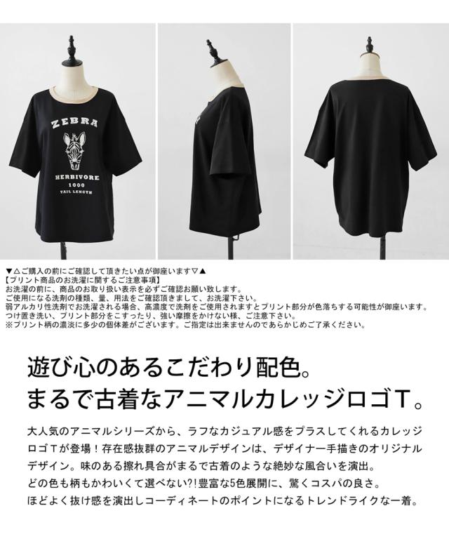 アニマル カレッジロゴ Tシャツ レディース トップス 綿・再再販。(100)メール便可