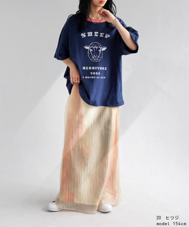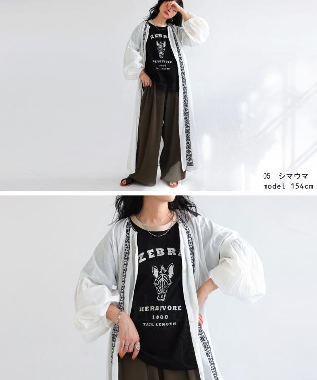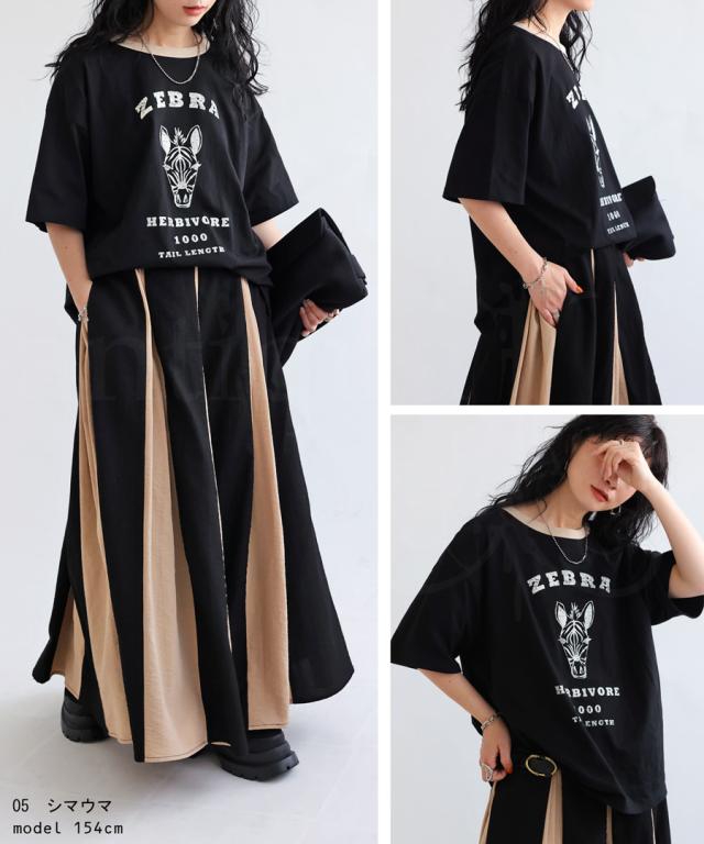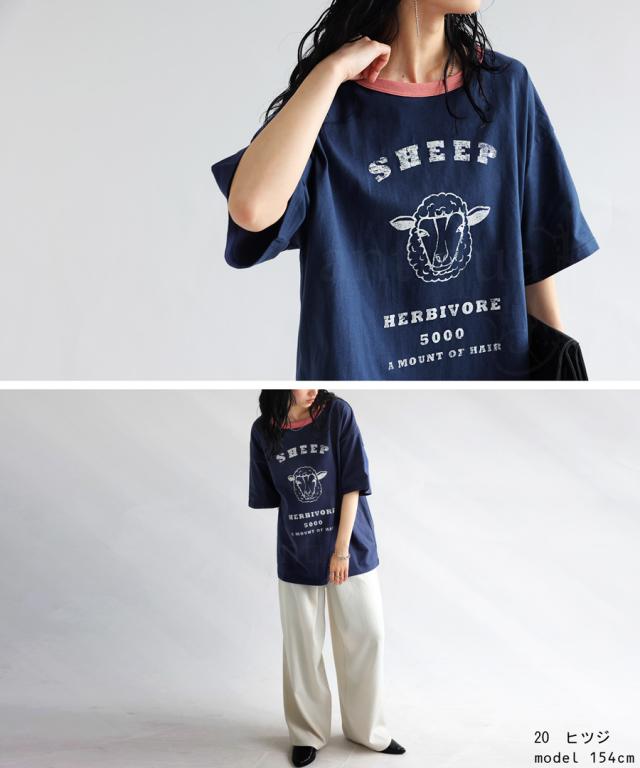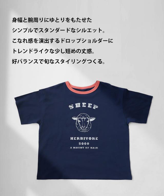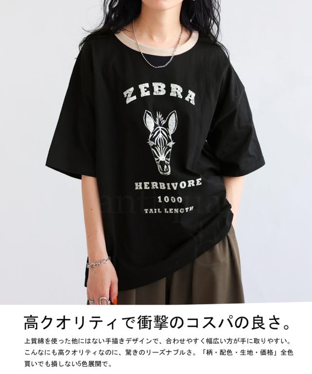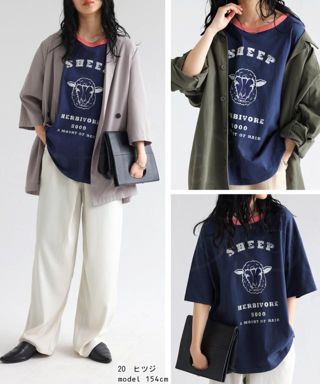 ama-00008 綿100 カットソー 半袖 五分袖 アニマルプリント 配色 ロゴT 手描き オリジナル プリント ヴィンテージ感 レトロ 古着風 ゆったり ジャスト丈 リンクコーデ 親子コーデ