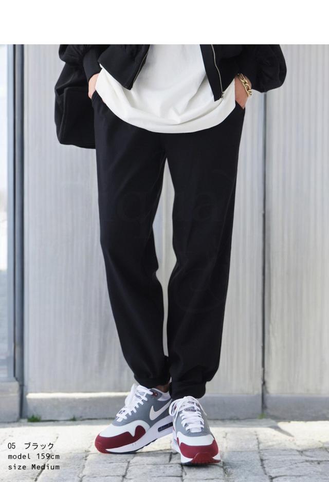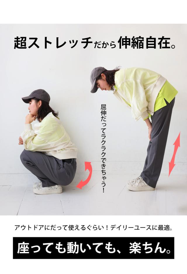 ate-00001 ロング 長ズボン 無地 テーパード ハイパーストレッチ サイズ展開 レーヨン混 ゆったり シンプル きれいめ 普段着 オフィスカジュアル 体型カバー 着痩せ 大きめ リンクコーデ