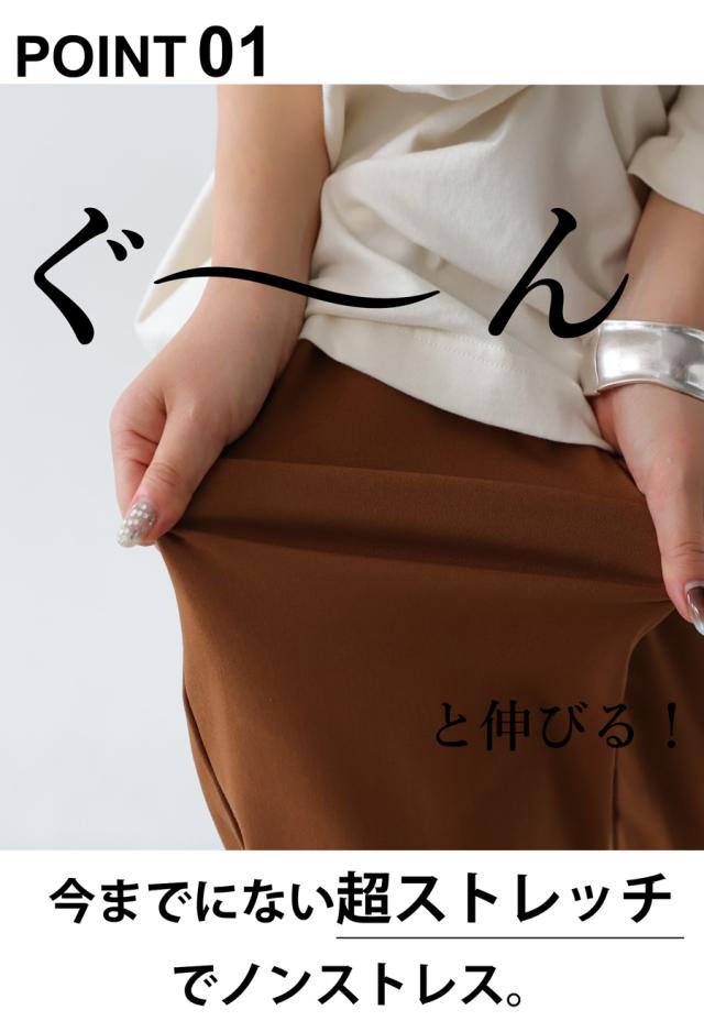 細身なシルエットながらも、穿くと楽ちんな優秀パンツ。