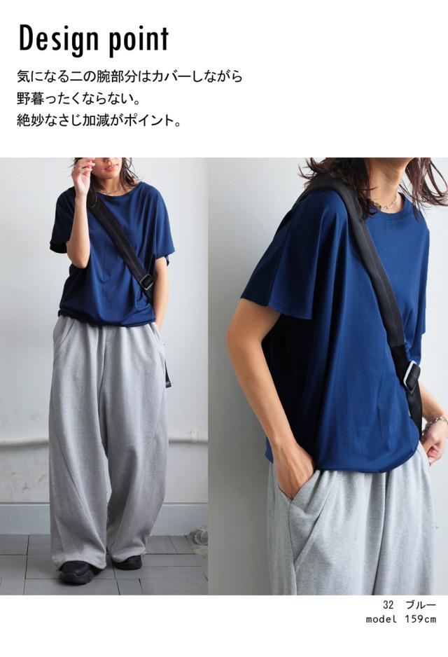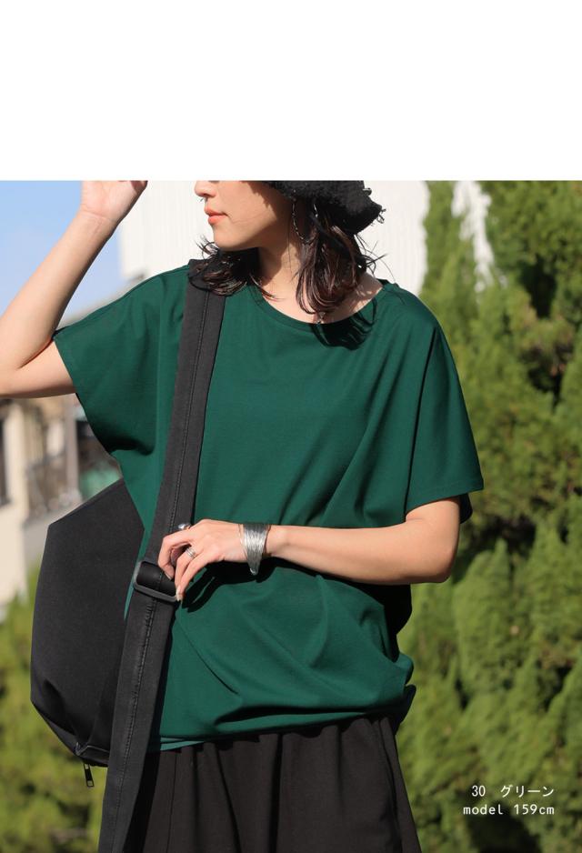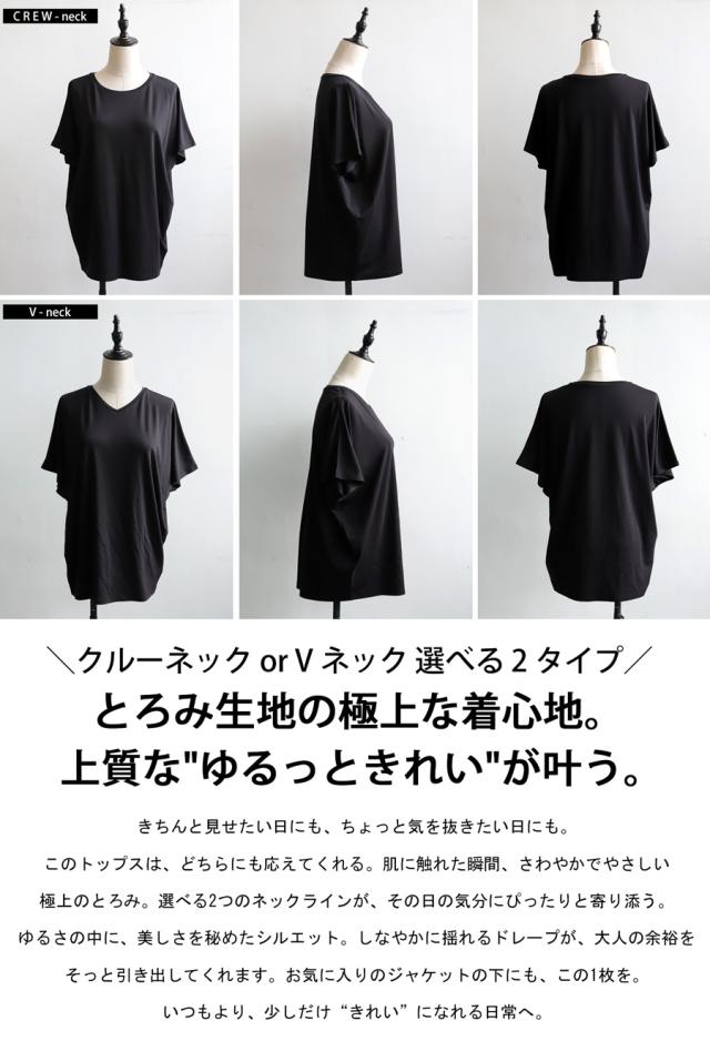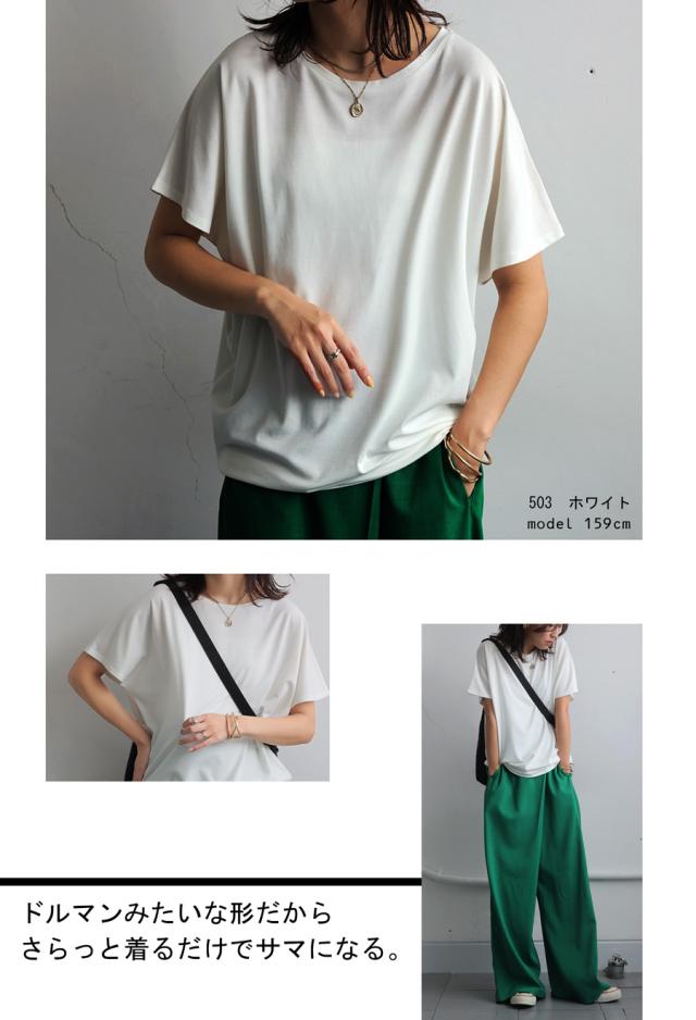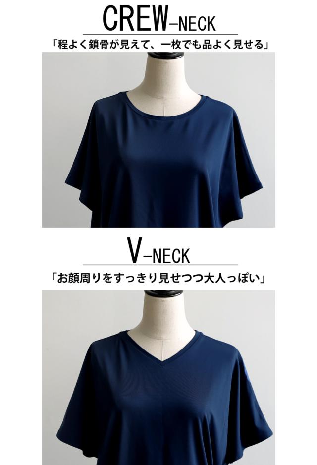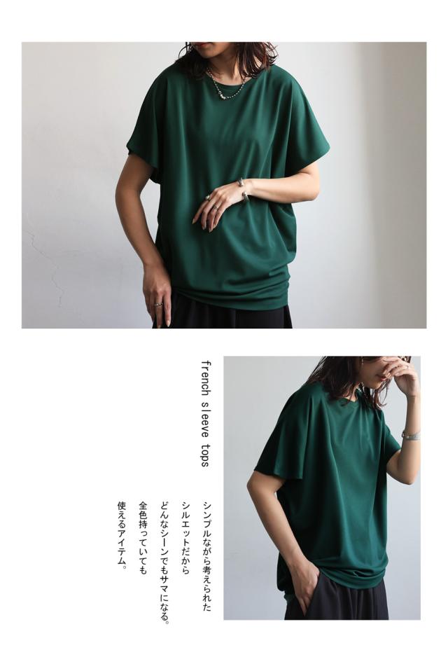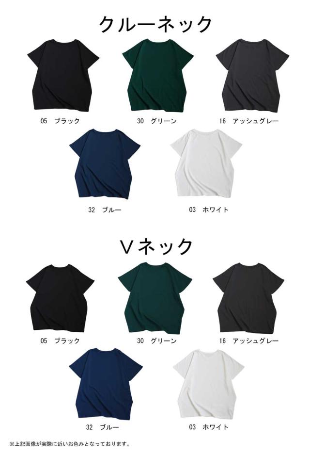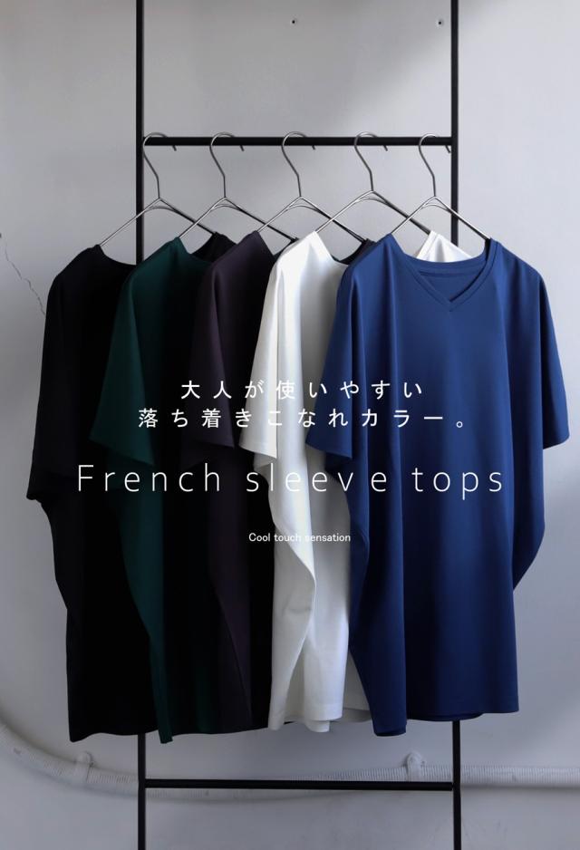 ay-00073 フレンチスリーブ きれいめ シンプル カットソー プルオーバー クルーネック Vネック ひんやり 快適素材 ゆったり オーバーサイズ 大きいサイズ ドルマン風 快適