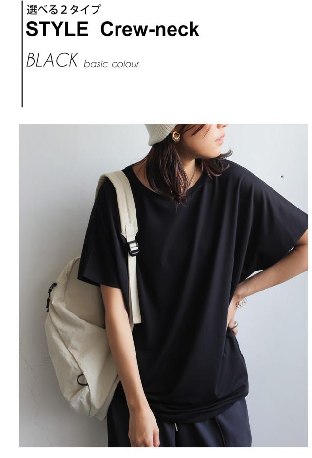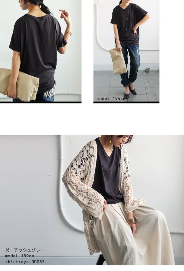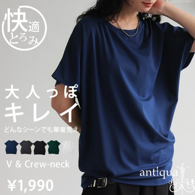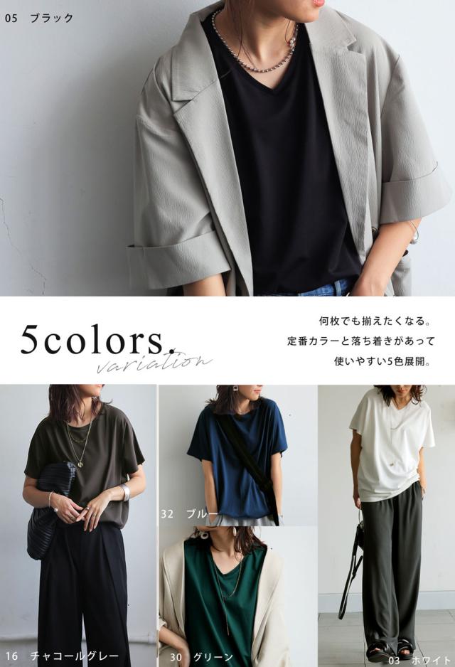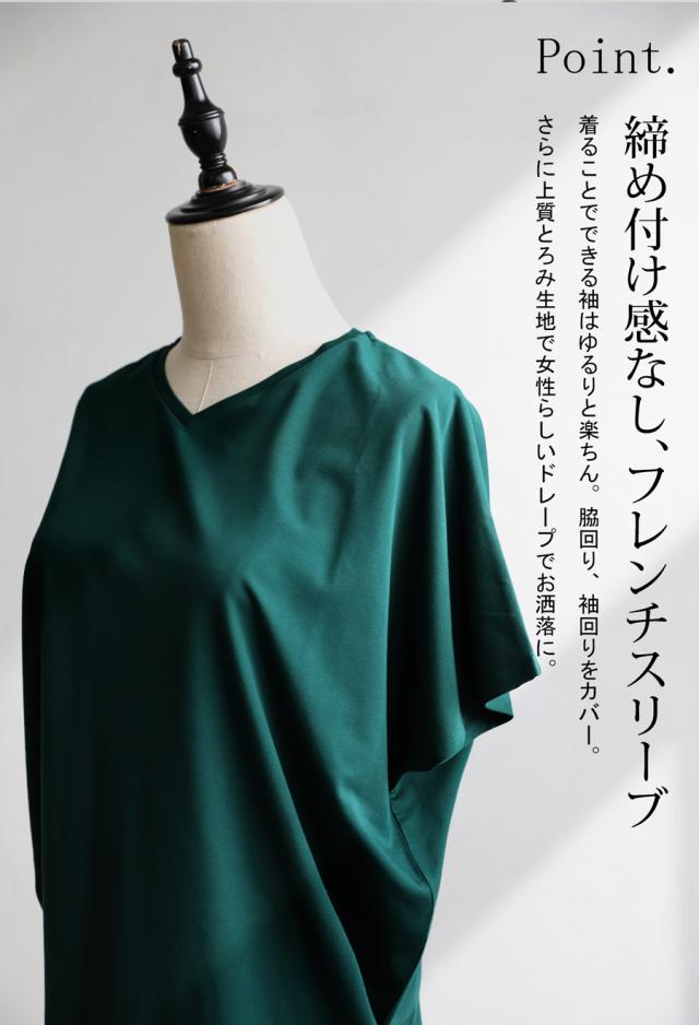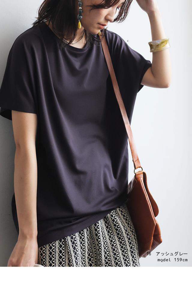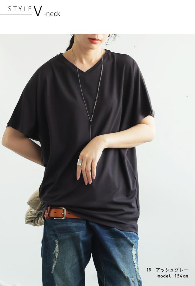 ay-00073 フレンチスリーブ きれいめ シンプル カットソー プルオーバー クルーネック Vネック ひんやり 快適素材 ゆったり オーバーサイズ 大きいサイズ ドルマン風 快適