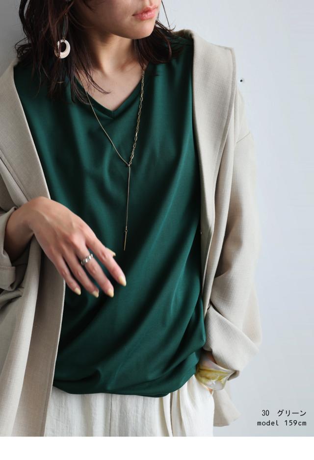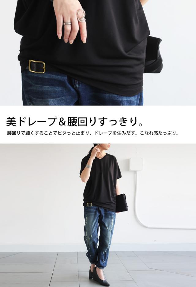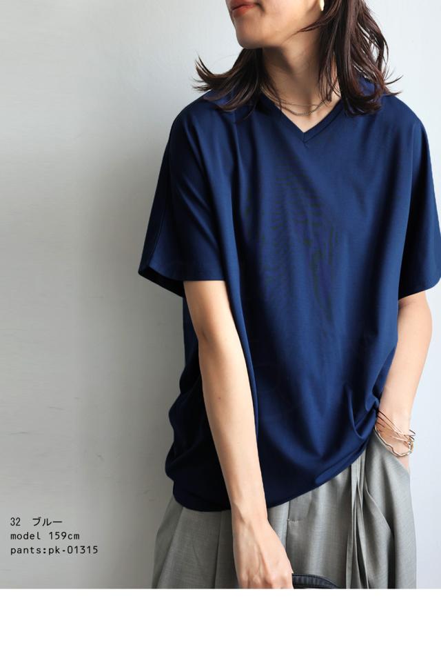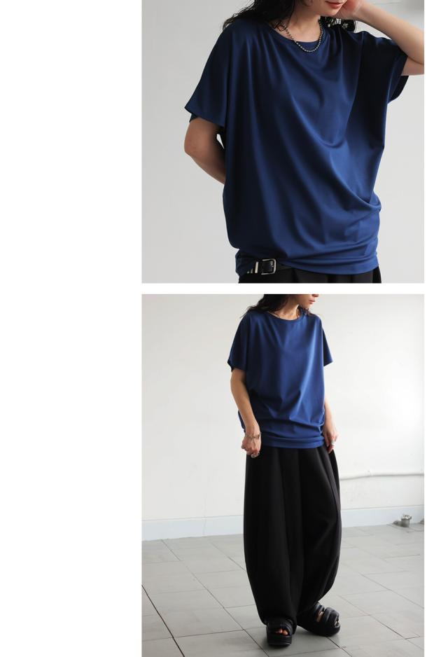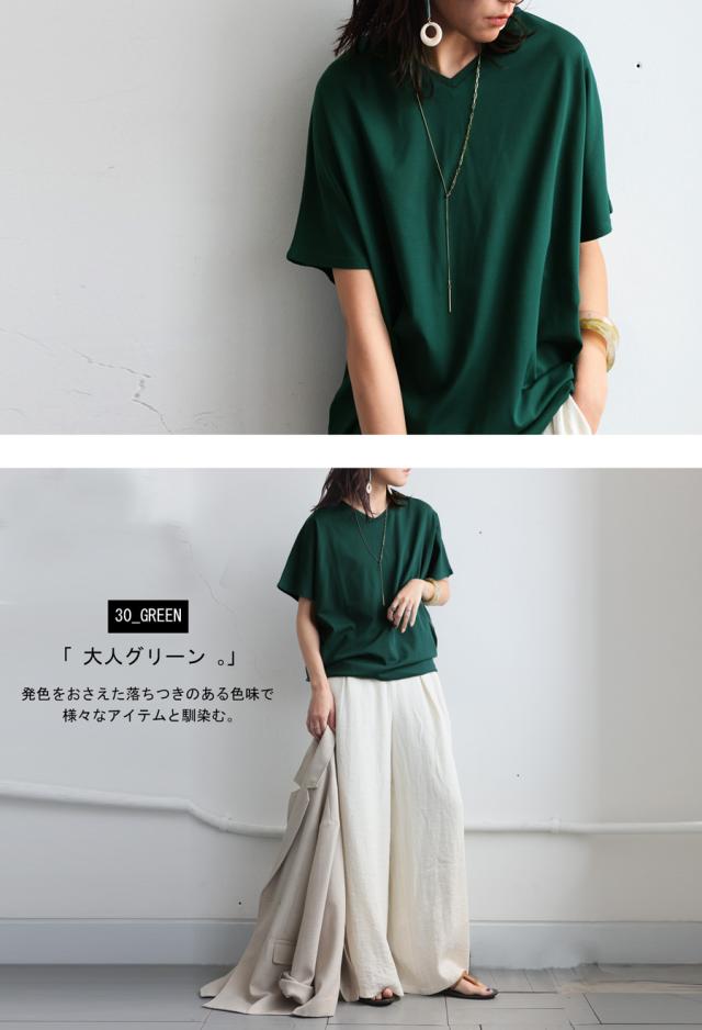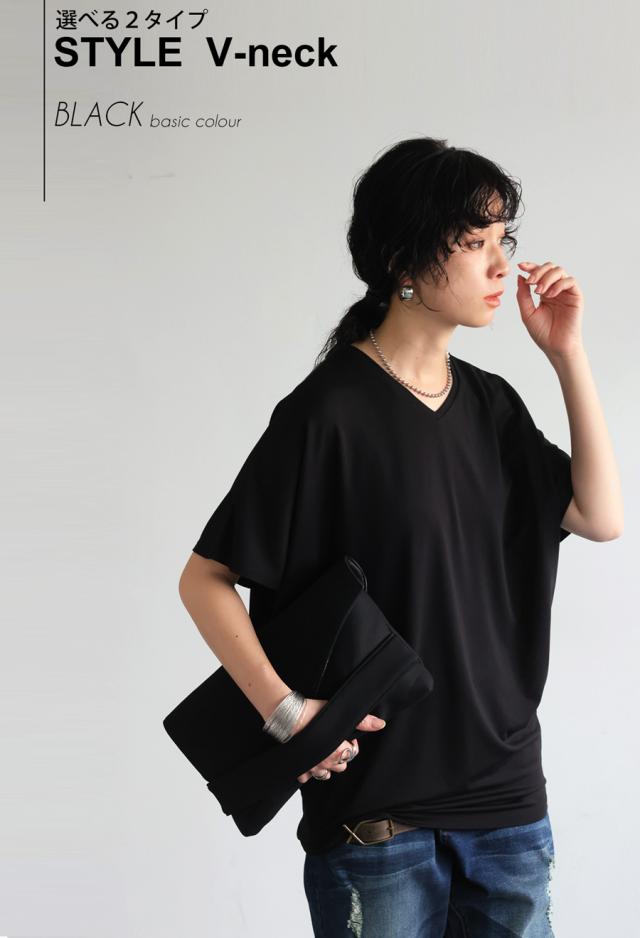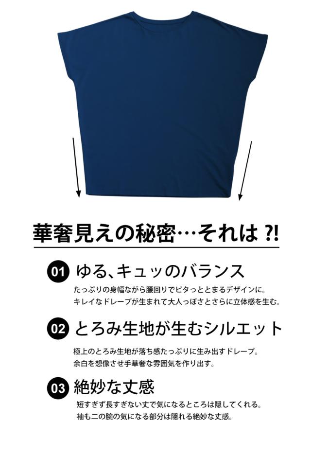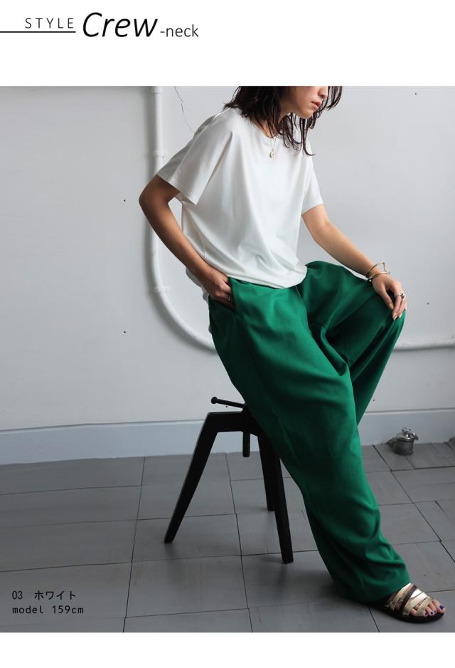 ay-00073 フレンチスリーブ きれいめ シンプル カットソー プルオーバー クルーネック Vネック ひんやり 快適素材 ゆったり オーバーサイズ 大きいサイズ ドルマン風 快適