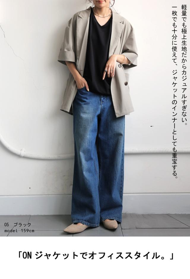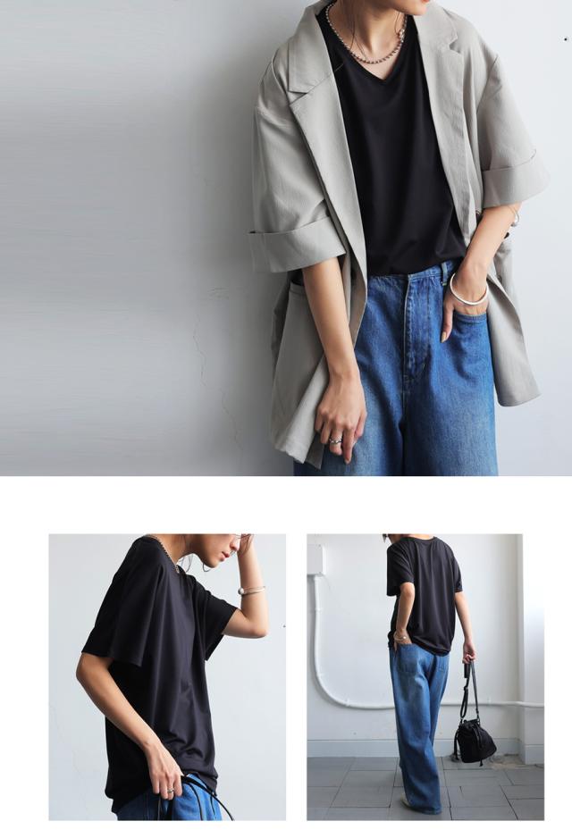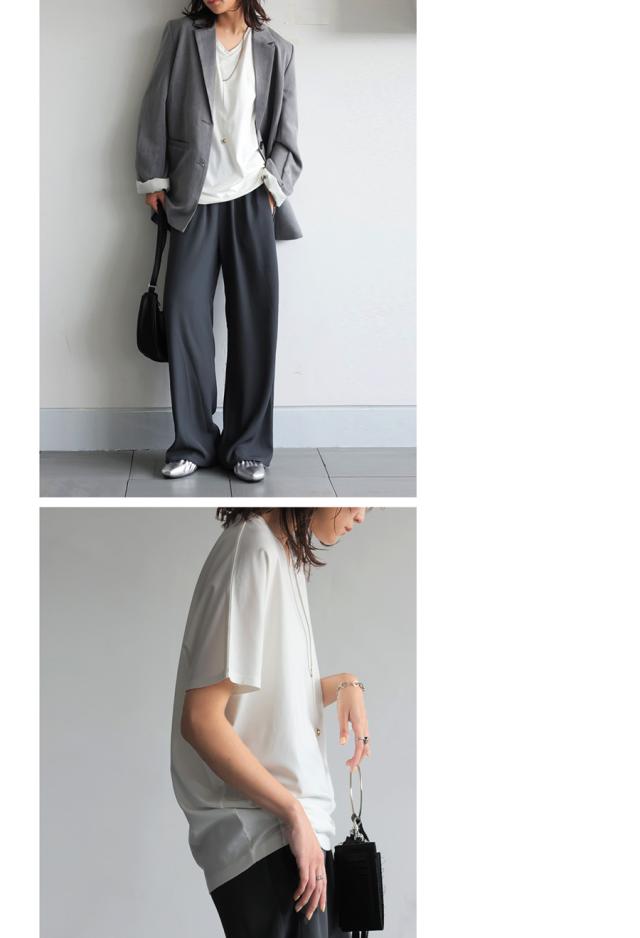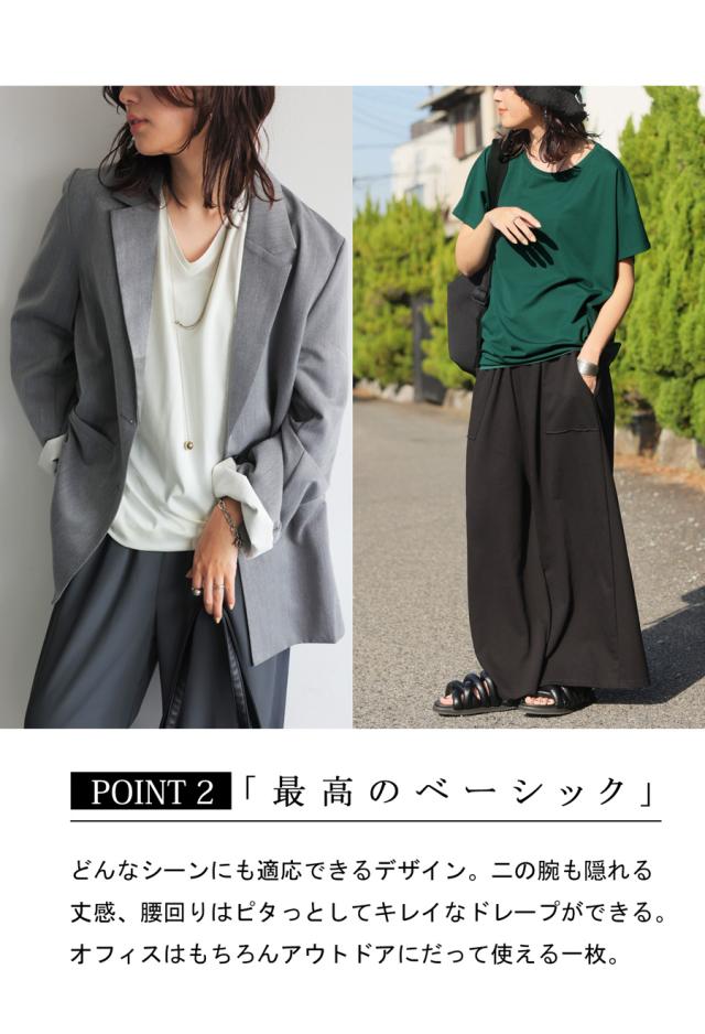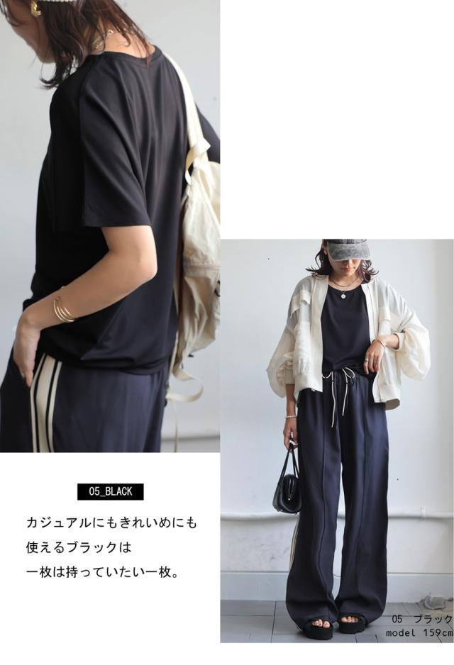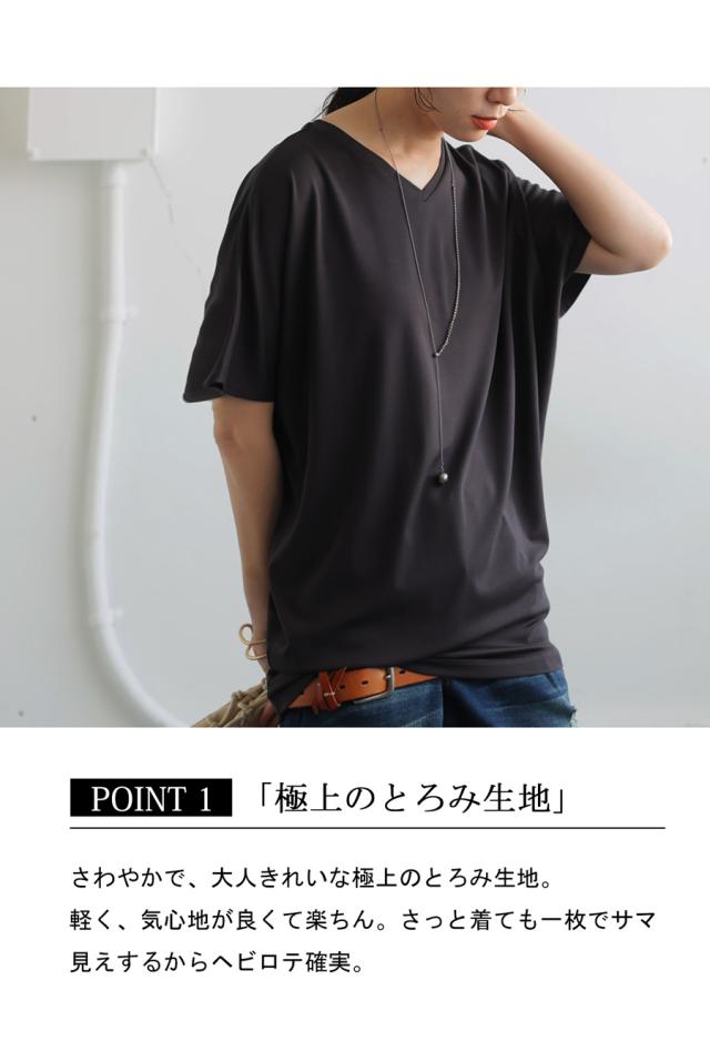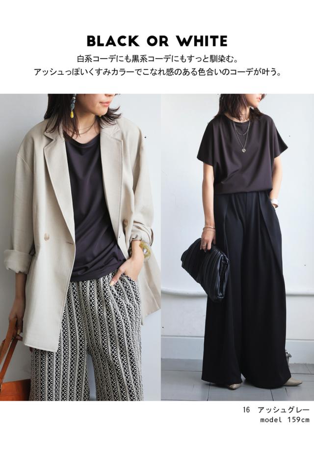 選べるネックラインで印象を変えられる、大人のためのとろみTシャツ。