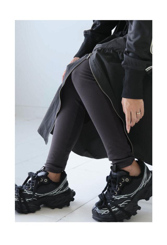脚に沿うスリムな形状とくしゅっとした丈感がスタイルアップ効果を演出。