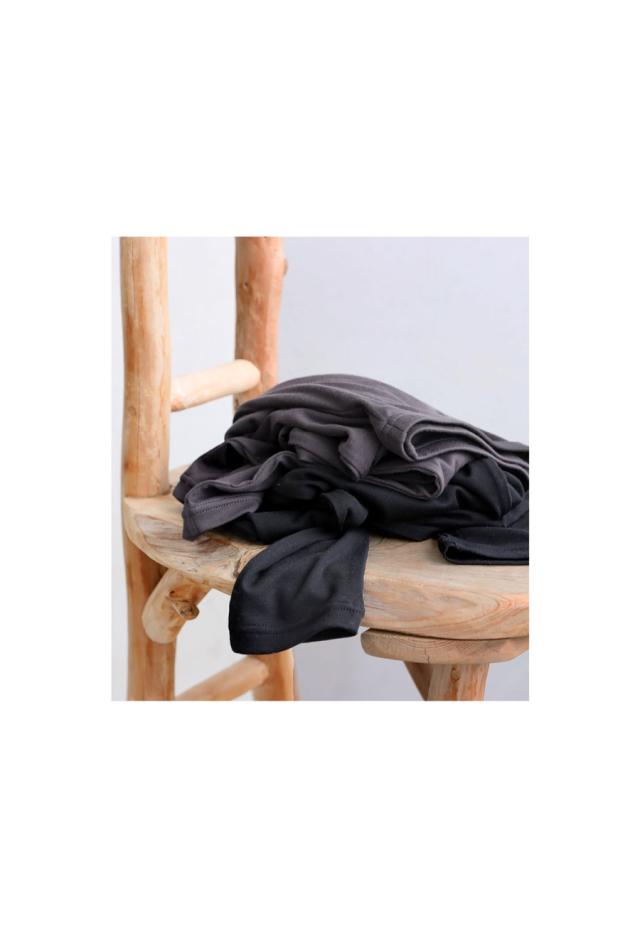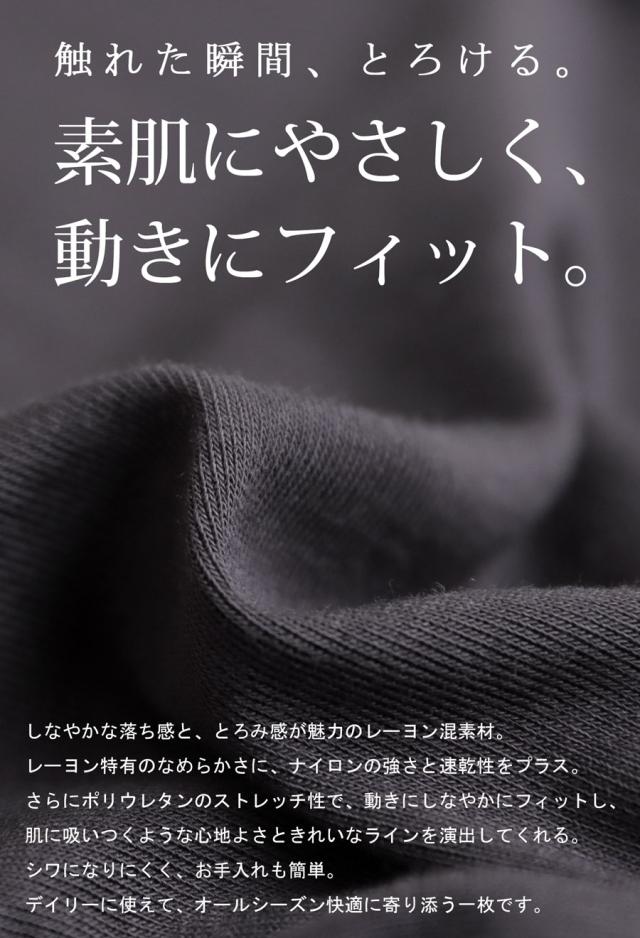 レーヨン混のとろみ素材が肌にやさしく、ナイロンの強さと速乾性がプラスされて機能面も充実。