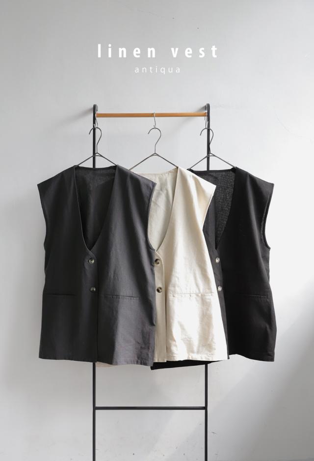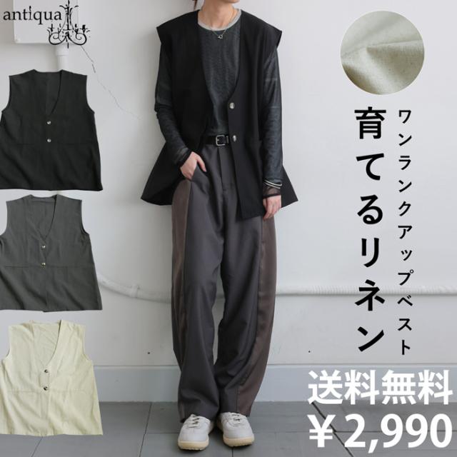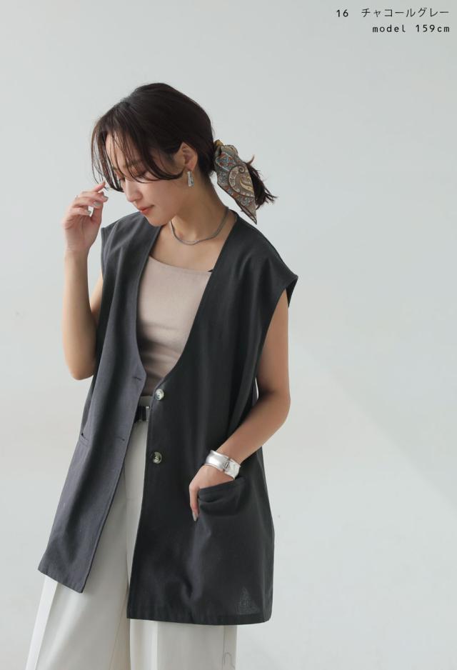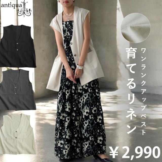 【検索ワード】育てるリネン リネンベスト レディース トップス ジレ 無地 麻 麻混 Vネック 前開き ボタン ゆったり ノースリーブ シンプル きれいめ 上品 レイヤード 重ね着 スタイリッシュ マーブルボタン ミニマル 体型カバー 長め丈 きちんと感 シワになりにくい ポケット付き オーバーサイズ ビッグシルエット 大きめ 大きいサイズ ナチュラル 白 ホワイト ブラック 黒 茶コールグレー グレー antiqua アンティカ 大人 おしゃれ 10代 20代 30代 40代 50代 60代 春 夏 秋 お洒落 カジュアル かわいい かっこいい あんてぃか