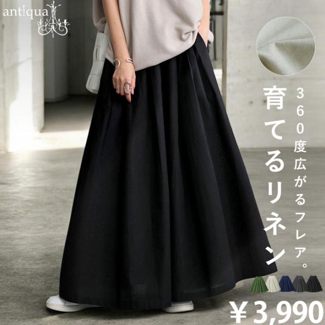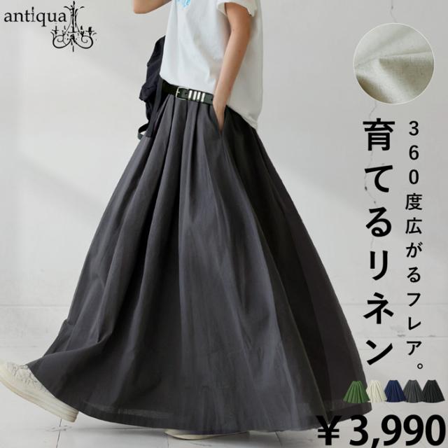 【検索ワード】育てるリネン フレアスカート スカート レディース ボトムス ロング 無地 麻 麻混 リネン混 フレアシルエット Aライン ロングスカート プリーツ ボリューム ロング丈 上品 きれいめ 高級感 ワイド タック ウエストゴム 前フラット 後ろゴム ポケット付き ゆったり 抜け感 大きめ 大きいサイズ ナチュラル ホワイト 白 カーキ ブラック 黒 チャコールグレー グレー ネイビー 紺 antiqua アンティカ 大人 おしゃれ 10代 20代 30代 40代 50代 60代 春 夏 秋 お洒落 カジュアル かわいい かっこいい あんてぃか