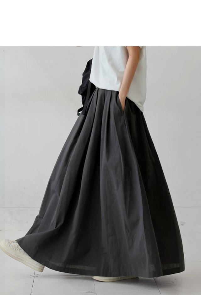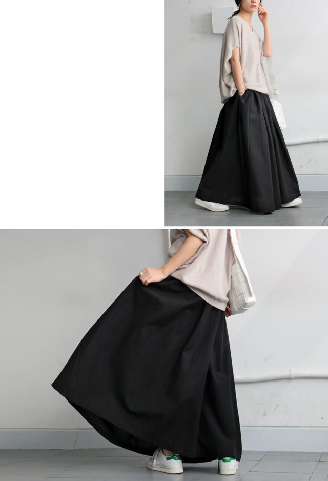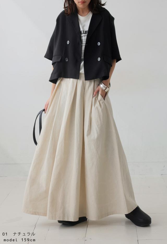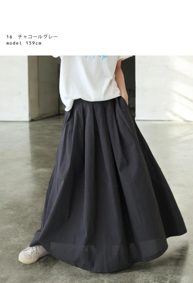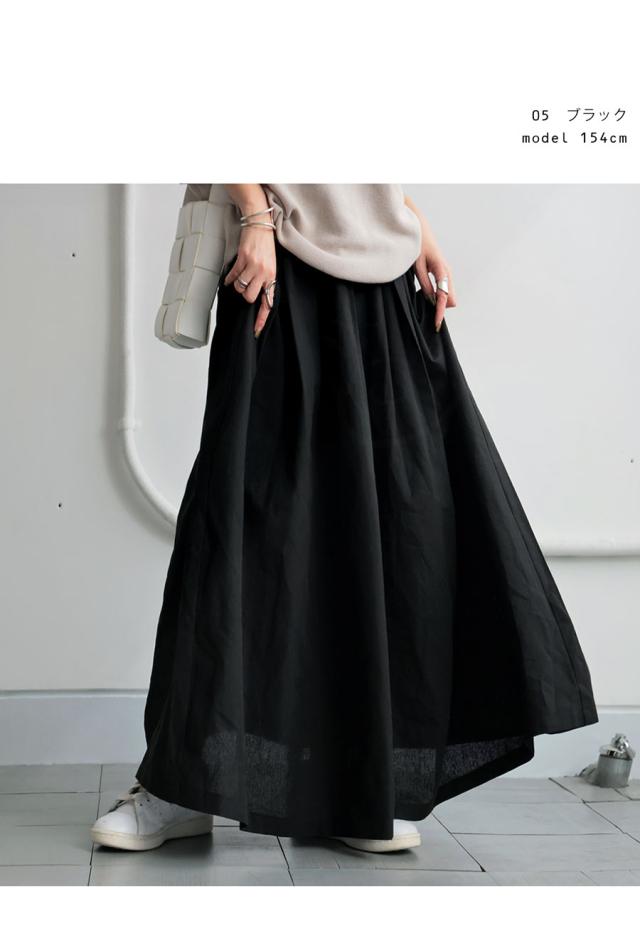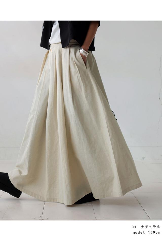 aya-00035 ボトムス ロング 無地 麻 麻混 リネン混 フレアシルエット Aライン ロングスカート プリーツ ボリューム ロング丈 上品 きれいめ 高級感 ワイド タック ウエストゴム