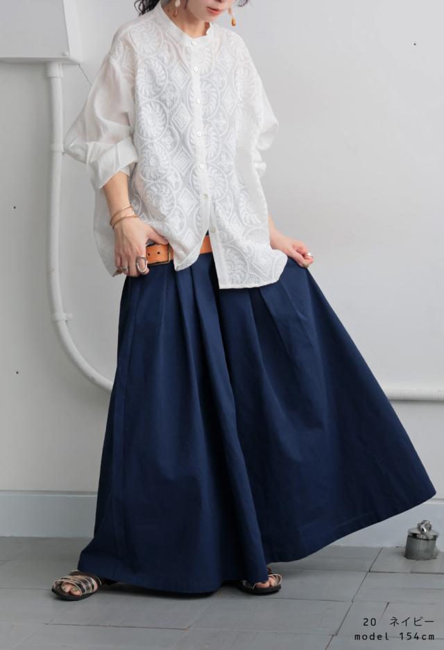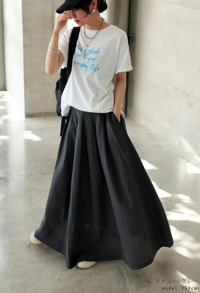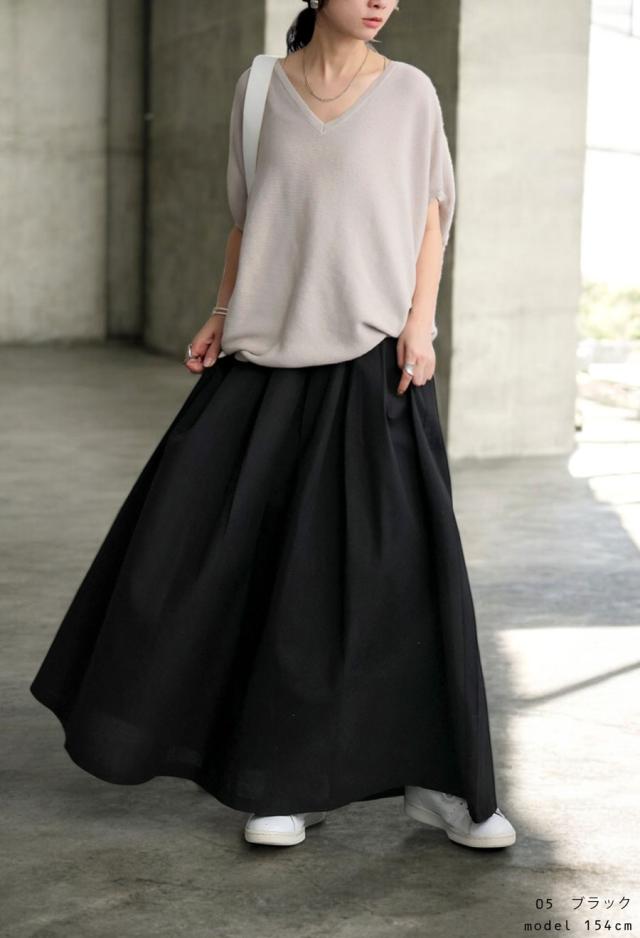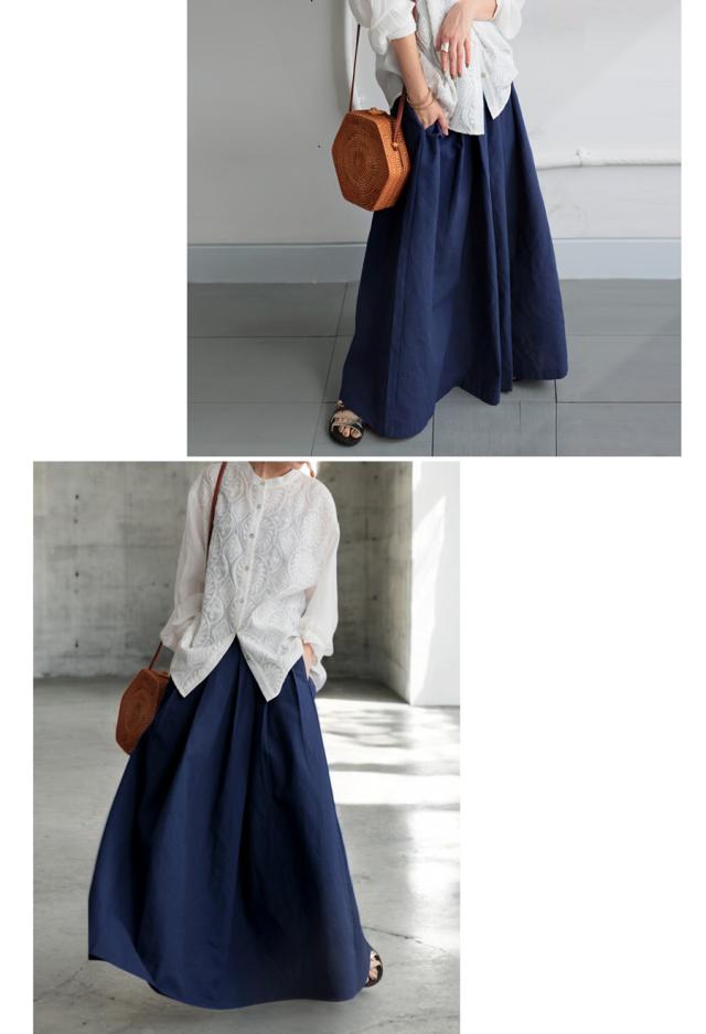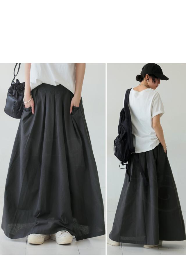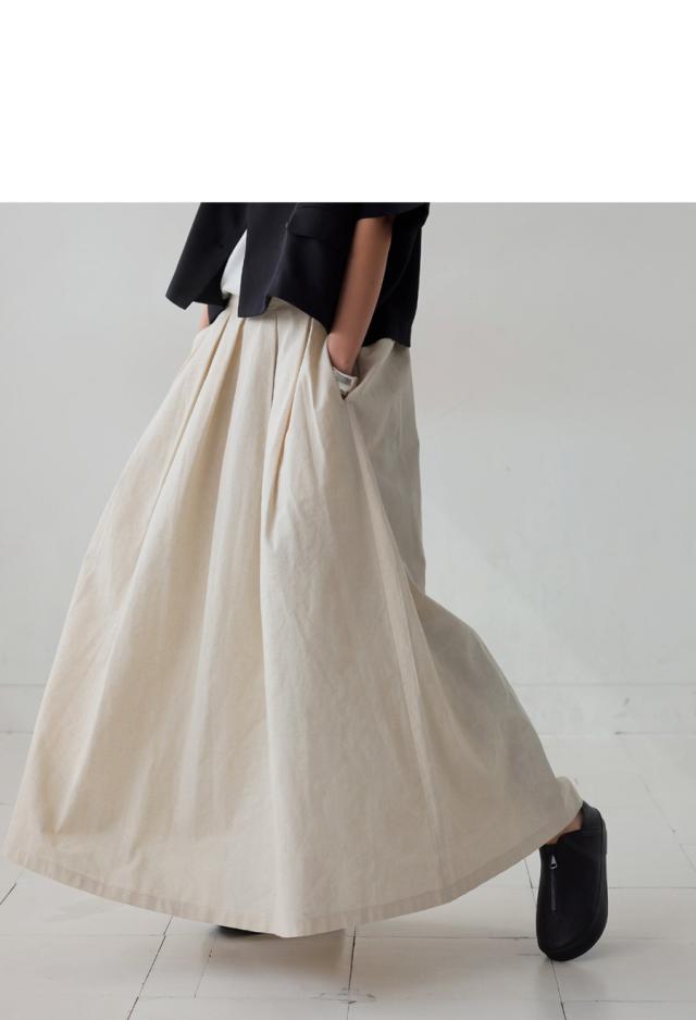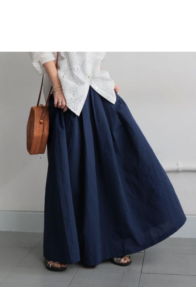 aya-00035 ボトムス ロング 無地 麻 麻混 リネン混 フレアシルエット Aライン ロングスカート プリーツ ボリューム ロング丈 上品 きれいめ 高級感 ワイド タック ウエストゴム