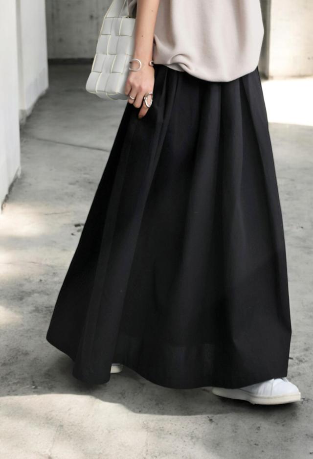 ふんわりと揺れる雰囲気抜群のフレアロングスカート。