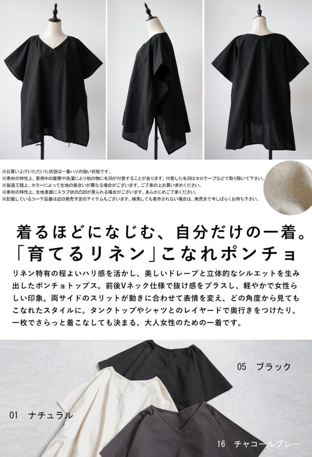育てるリネン Vネックポンチョ ベスト レディース 送料無料・(100)メール便可