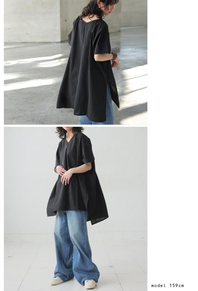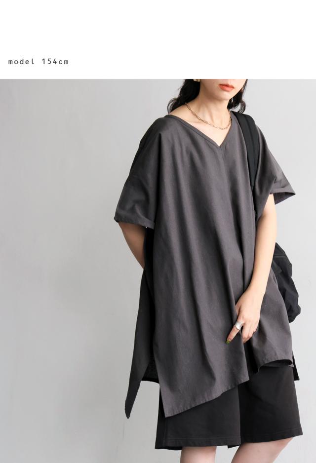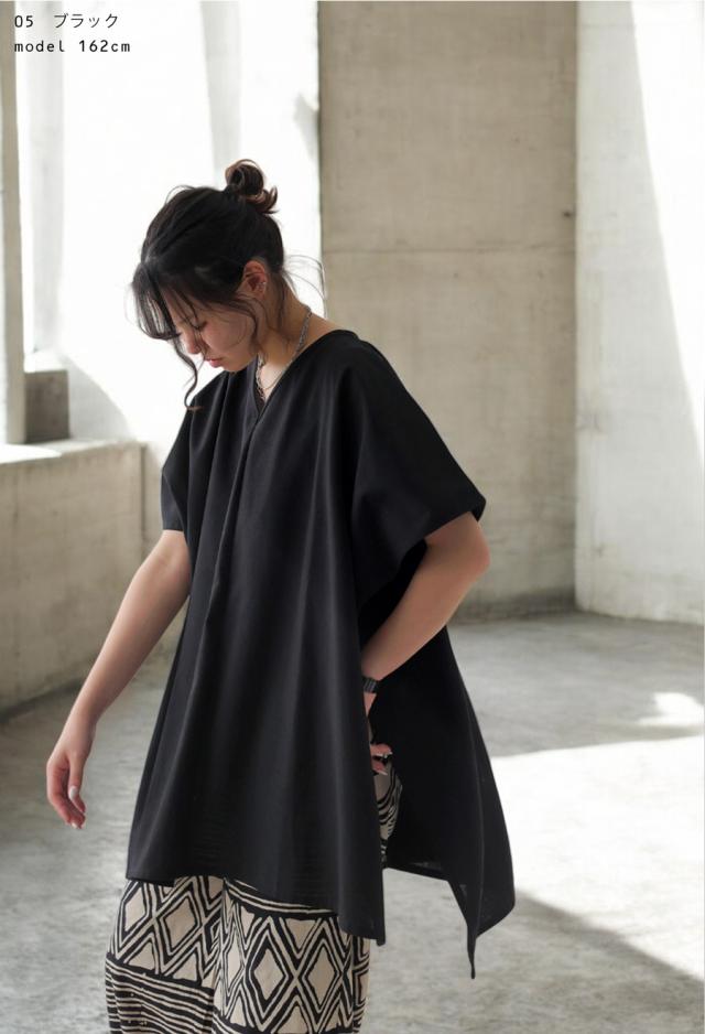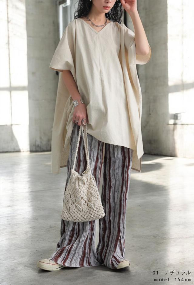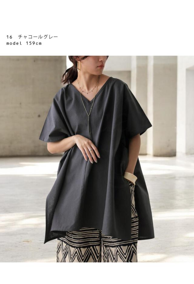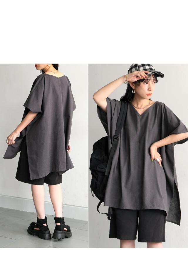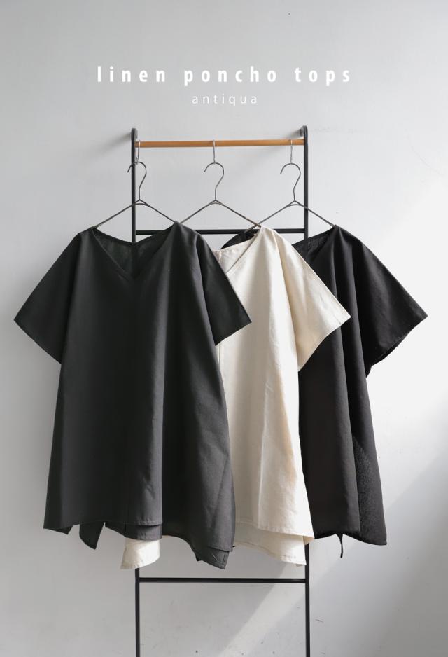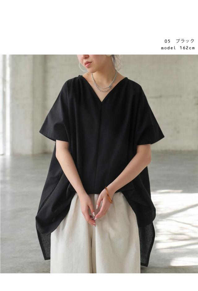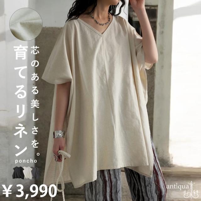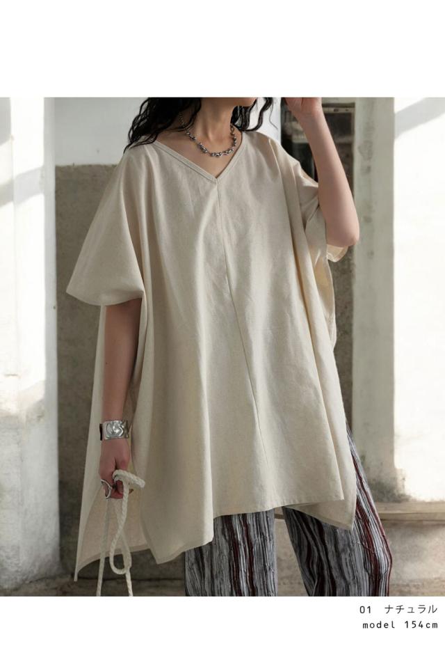 aya-00039 トップス ポンチョ リネンベスト ゆったり ワイド 重ね着 レイヤード 半袖 Vネック 抜け感 麻 麻混 スリット ドレープ 落ち感 ハリ 丈長め ポンチョトップス アレンジ